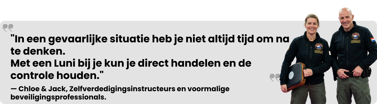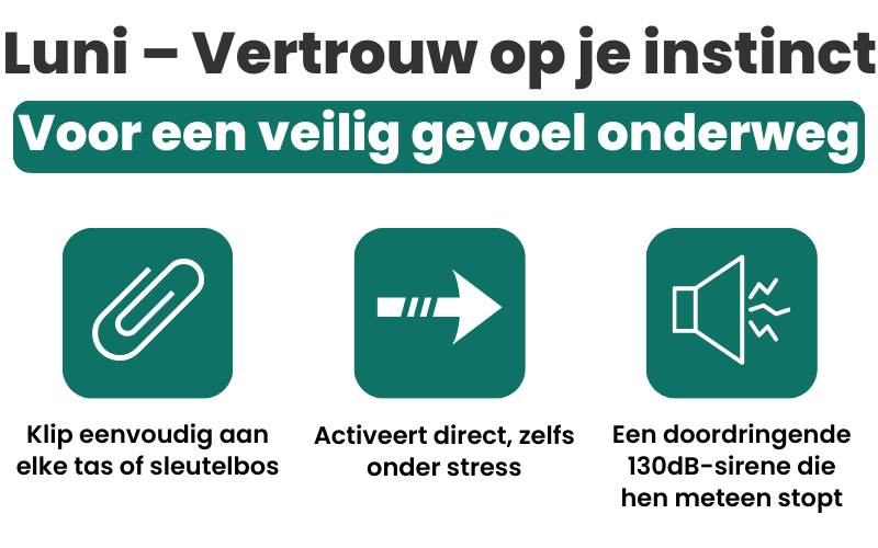 Absoluut. Veel moeders kopen Luni voor hun dochters die in het donker terugfietsen van hun studie of na een late shift in de horeca. Hij is compact, handig en vereist geen ingewikkelde handelingen — zelfs niet onder grote stress.